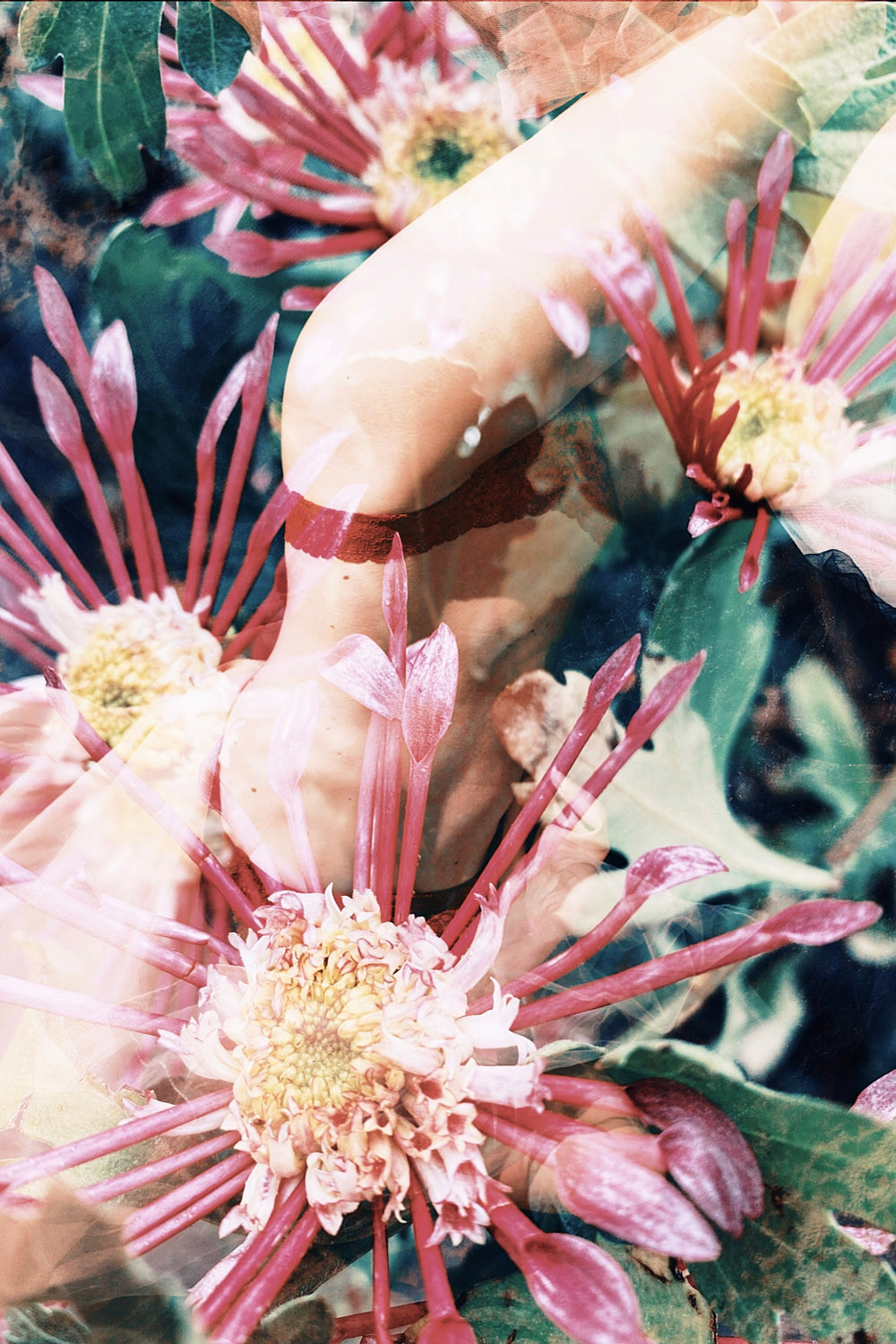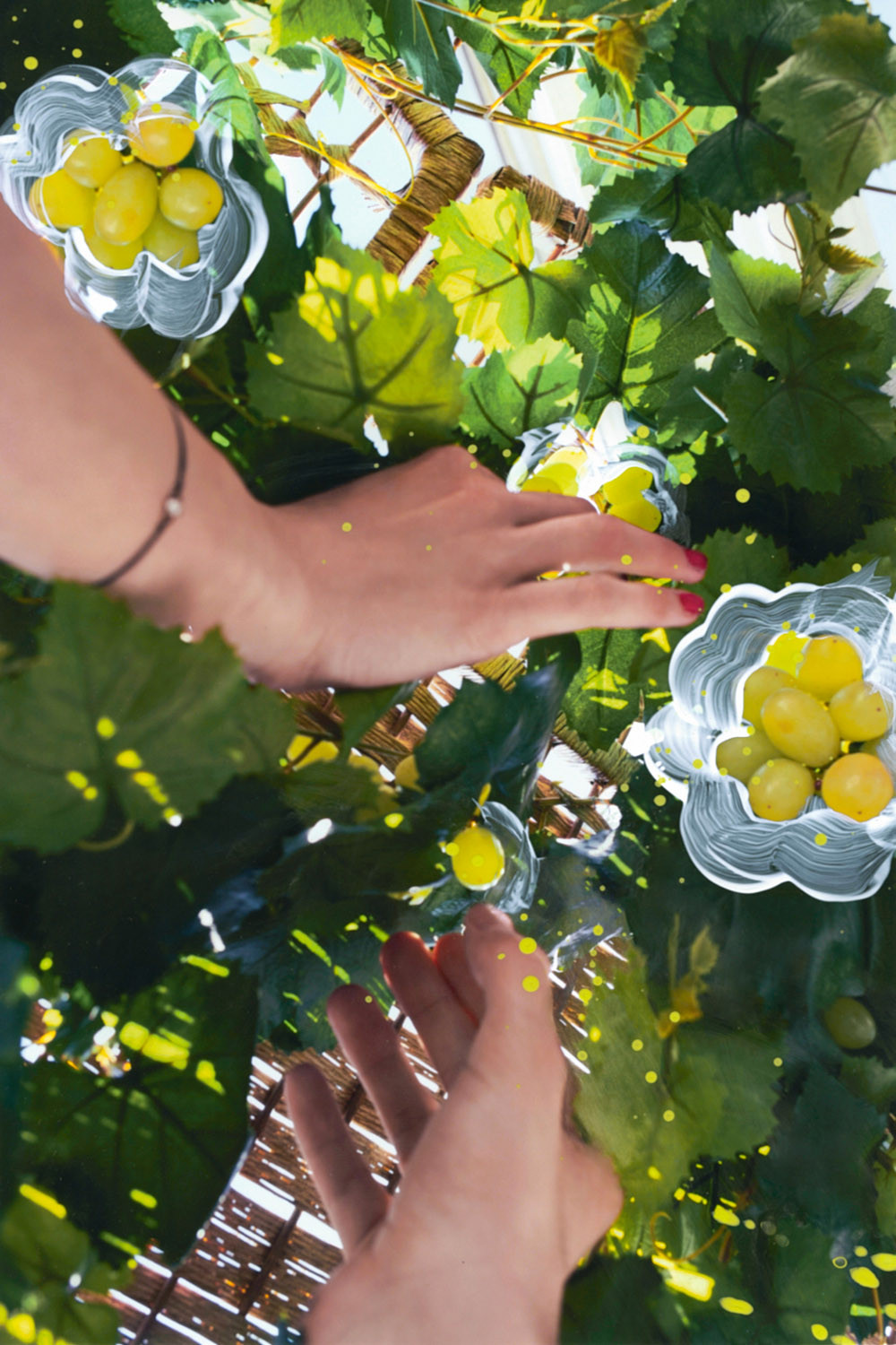 Ihre Liebe zum Experimentellen während und nach der Ausbildung zur Fotografin spiegelt sich in Formen und Farben wider, die sie durch Collagen und Verfremdungen zusammenführt.