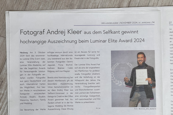 Andrej Kleer gewinnt Auszeichnung beim Luminar Elite Award 2024